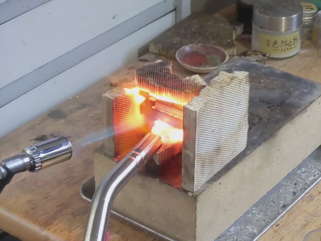 木目金は、異なる金属を重ね、彫り・捻り・叩き・伸ばすといった工程を繰り返すことで生まれる、日本の伝統技法です。