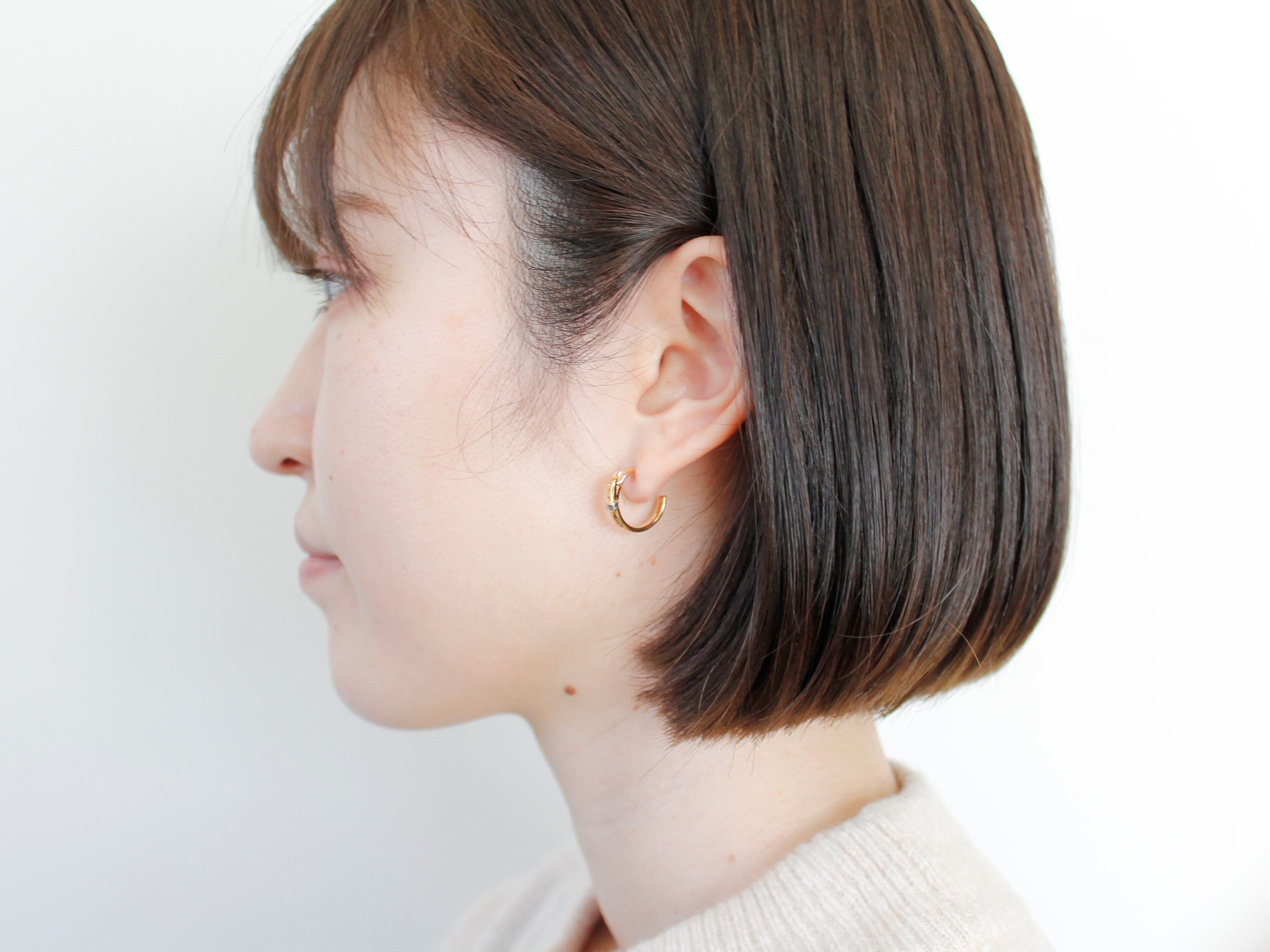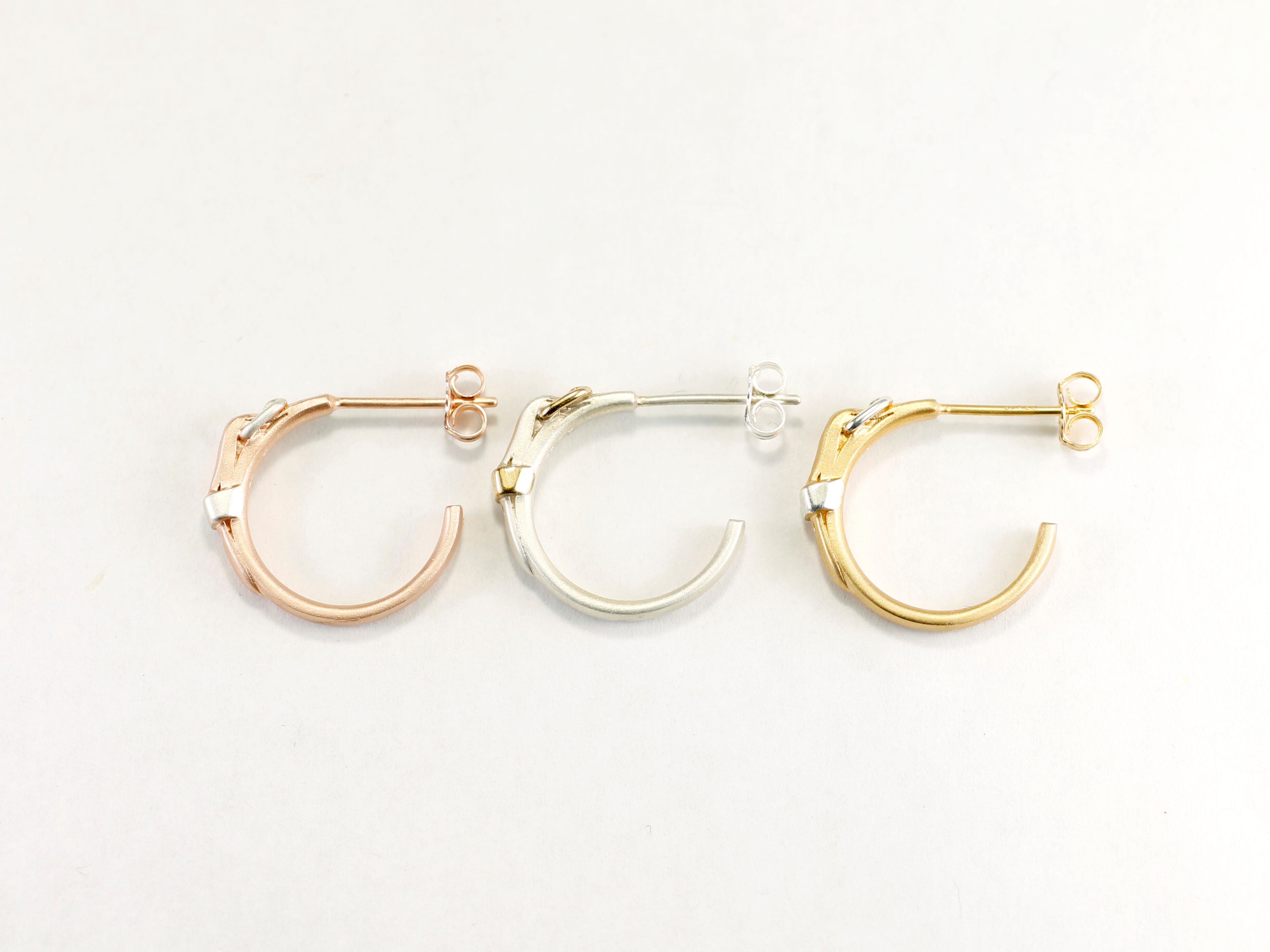 small rightで1番人気商品のベルトリングのデザインをそのままに、耳元を飾れるピアスを作りました。
