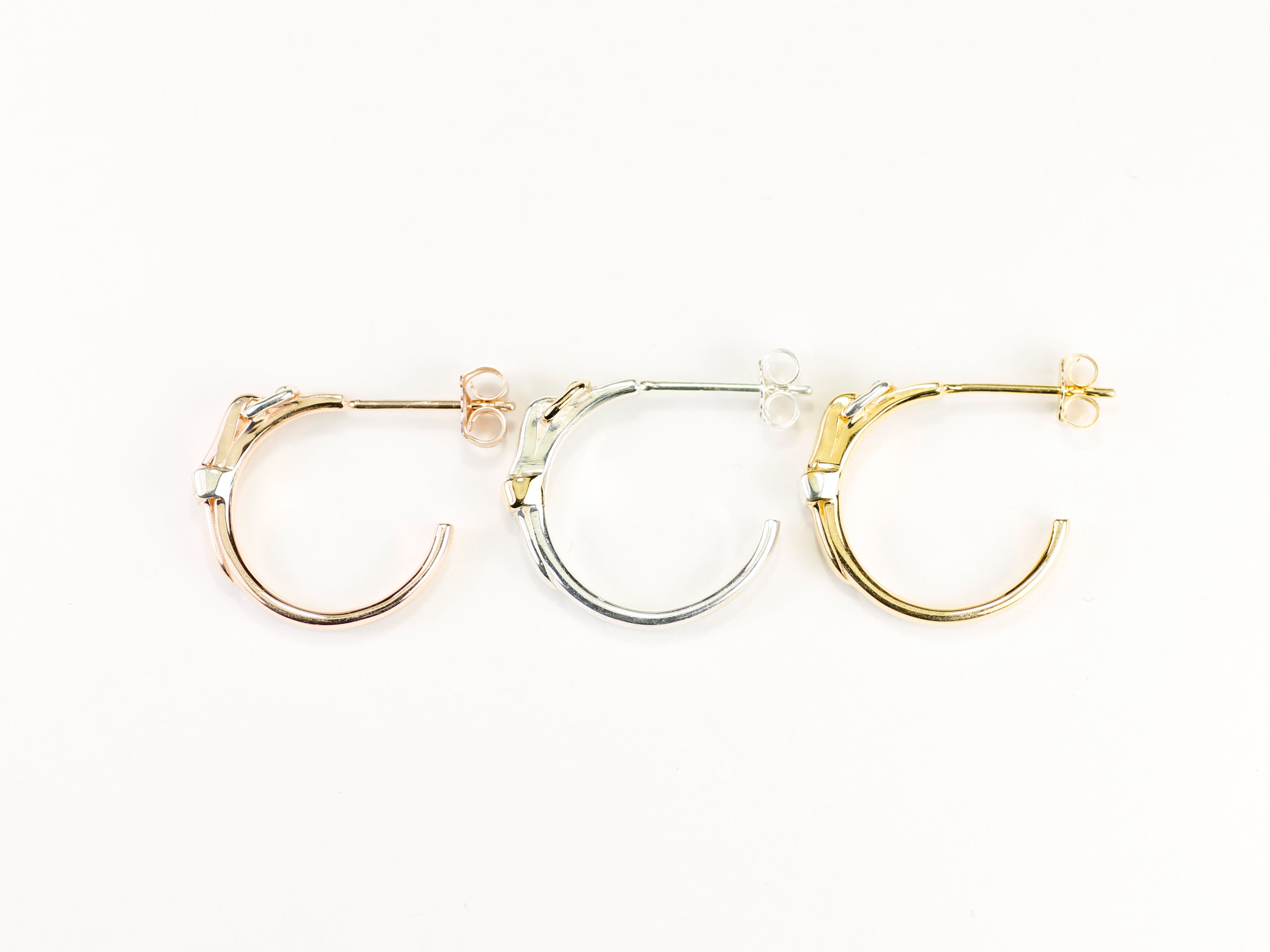 small rightで1番人気商品のベルトリングのデザインをそのままに、耳元を飾れるピアスを作りました。