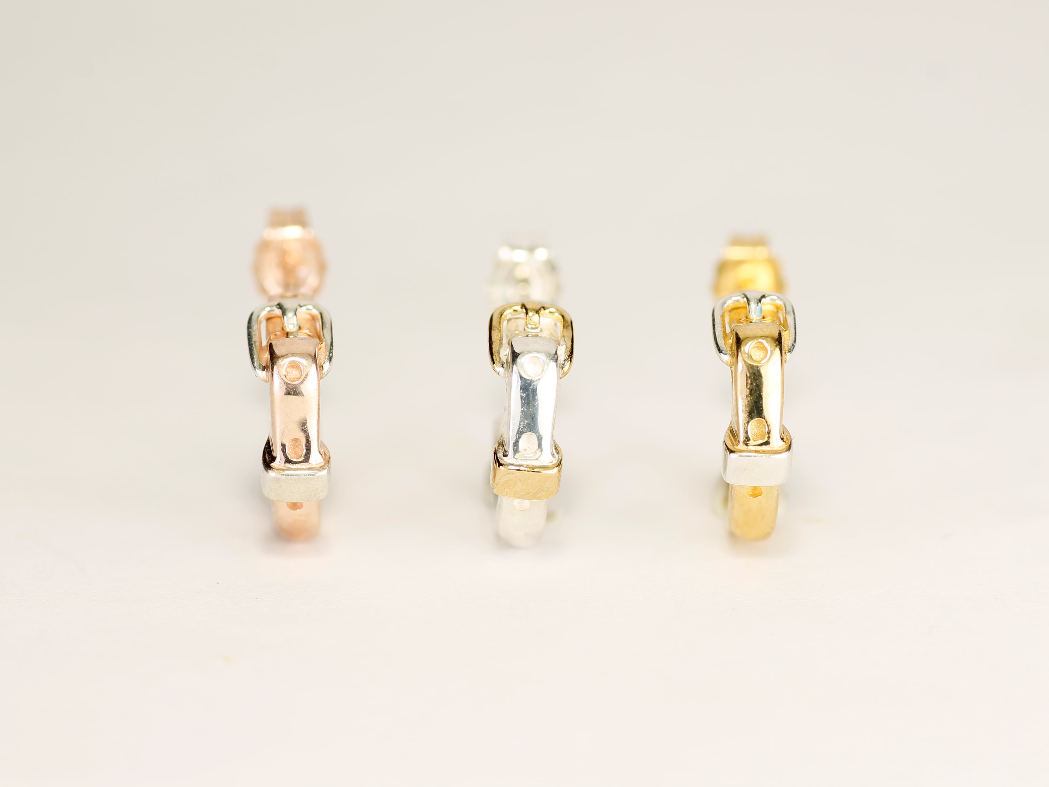 small rightで1番人気商品のベルトリングのデザインをそのままに、耳元を飾れるピアスを作りました。