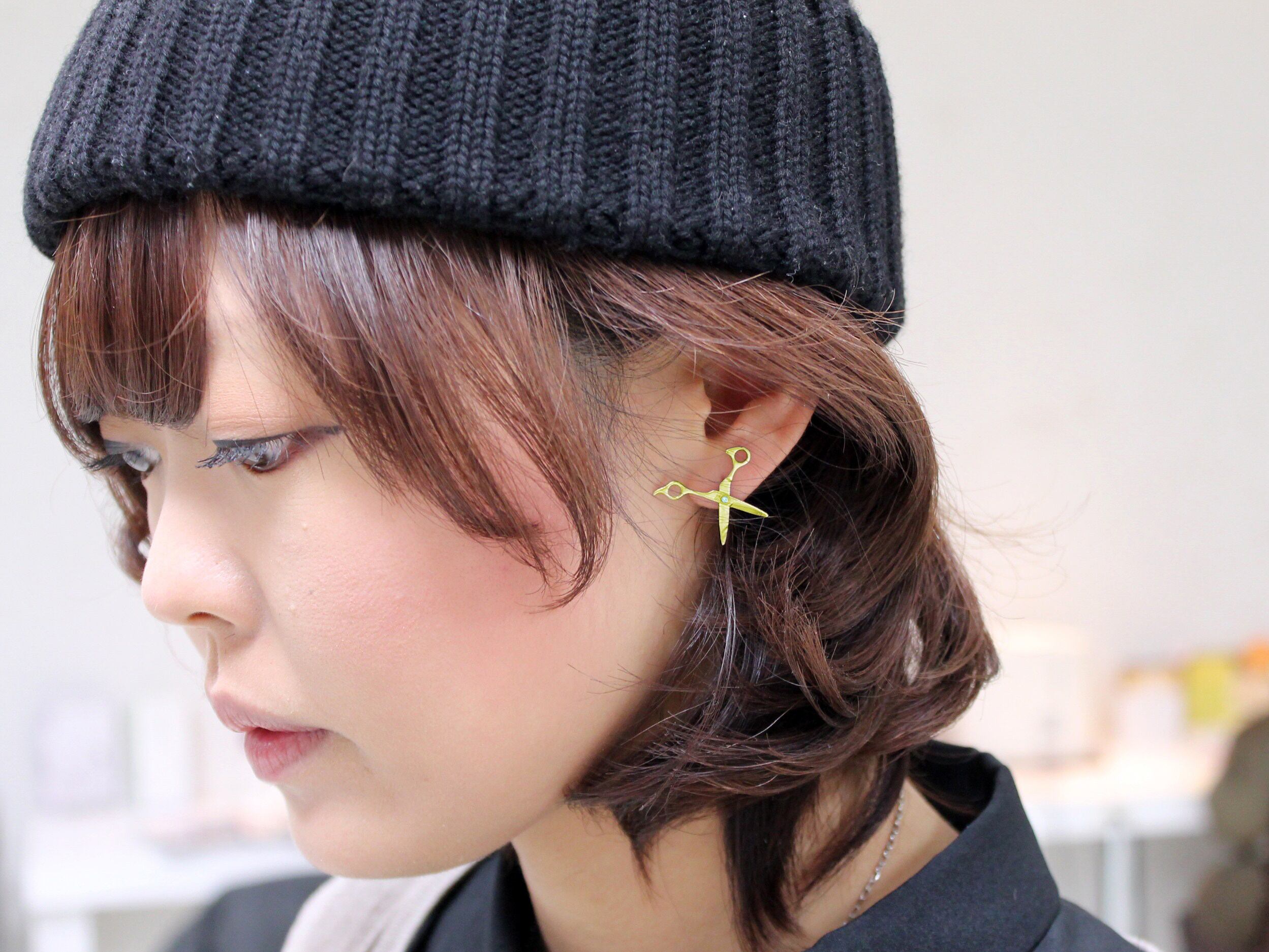 美容師さんの使う理容ハサミのミニチュアピアス。